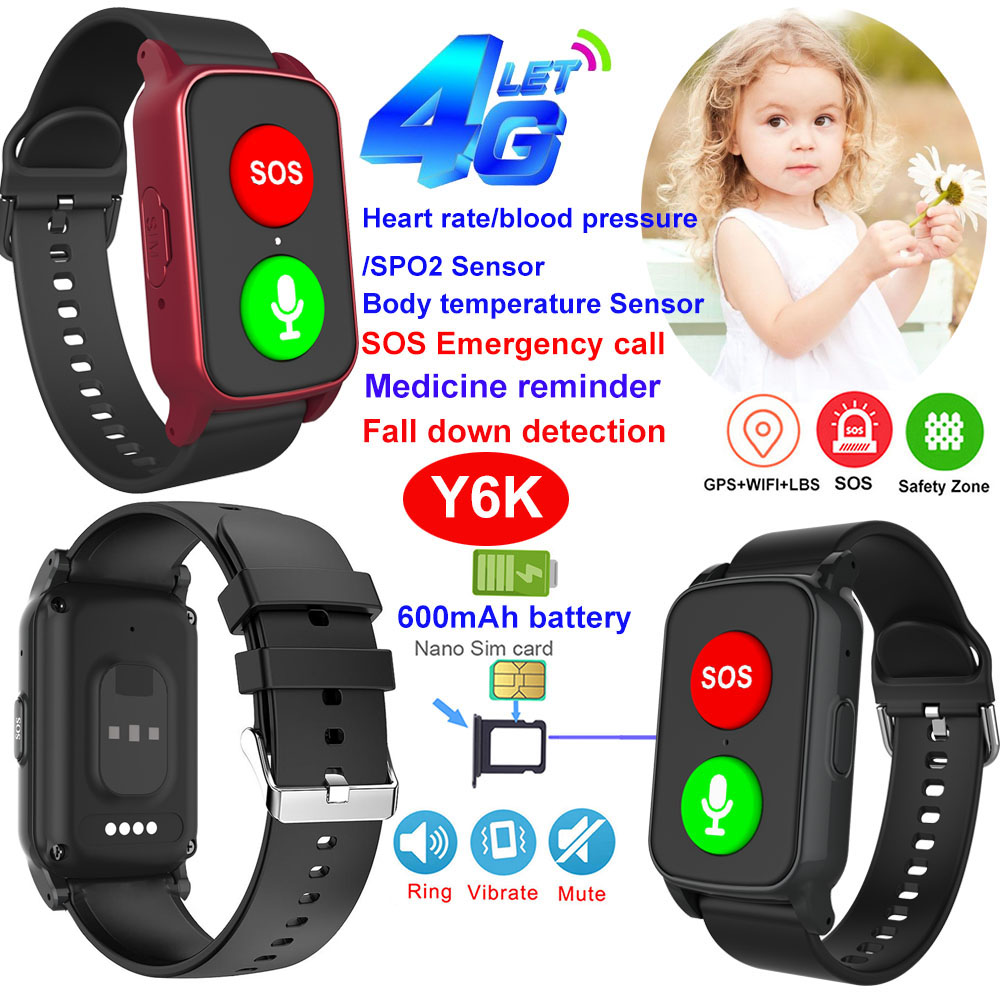 4G/3G/2G network compatible IP67 Waterproof GPS Tracker bracelet with Fall down detection and Heart rate/Blood pressure/blood oxygen/Body temperature monitoring Y6K