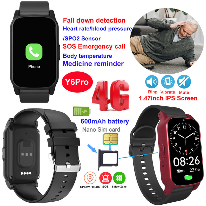 Y6Pro Smart slim Safety Watch is designed to offer comprehensive safety and health monitoring for seniors and lone workers. With SOS alarm, fall down ambulance alarm, live tracking, and two-way calling, help is always just a button away, also with realtime health(HR,BP,SPO2,Body temperature) monitoring.