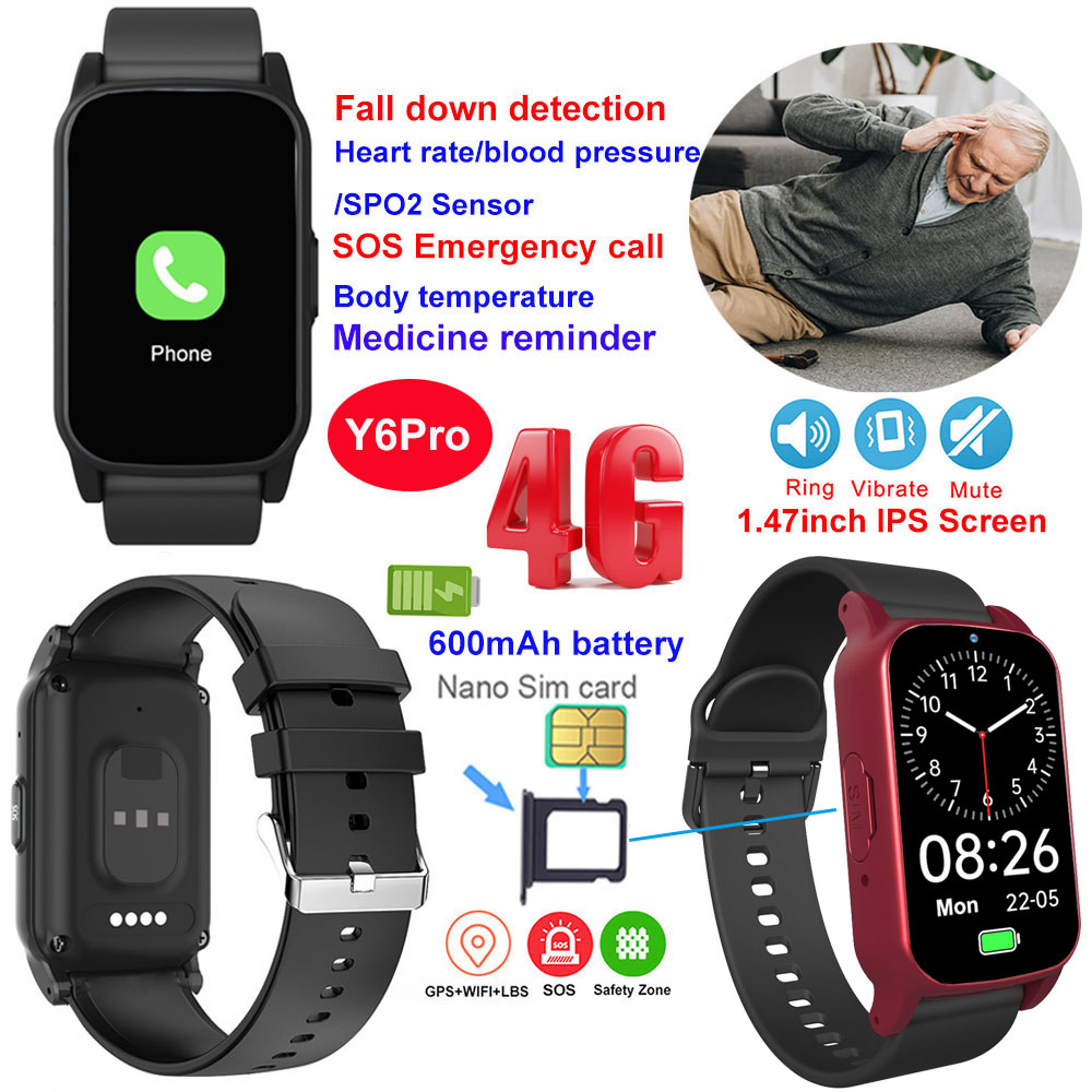 Fashion design China manufacture 4G IP67 waterproof senior smart watch tracker GPS with HR BP SPO2 body temperature monitor Geo-fence alerts SOS call Y6Pro