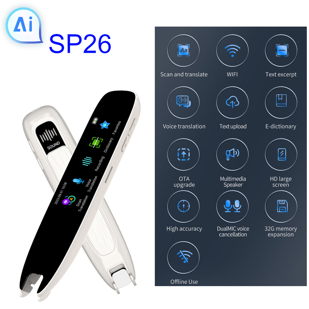 | Main feature | 1. 112 Languages. Humanoid digital voice reading and listening in multiple different languages. 5. Audio and text excerpts. It allows you to scan text or the entire text and save it to your computer via the USB port. The newly designed intelligent recording function is used as a digital recorder. 6. 13 system languages, The options include Chinese, English, Japanese, Korean, German, French, Italian and Spanish,ect 7. User-friendly Settings for left and right working modes. |