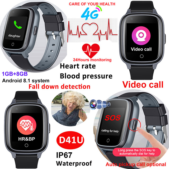 Choose the D41U 4G Senior Healthcare GPS Tracker Watch for uncompromising safety and health care for your elderly loved ones. Boasting 4G/Wi-Fi connectivity and precise GPS+LBS+Wi-Fi positioning, it ensures you always know their location, with geo-fence alerts and fall detection for instant safety notifications. The 24/7 health suite monitors heart rate, blood pressure, and blood oxygen, paired with sleep tracking and medicine reminders for holistic care. Two-way voice/video calls and a dedicated SOS button enable seamless emergency communication, while the IP67 waterproof design, 2-3 day battery life, and free essential accessories make it the reliable, all-in-one choice for senior well-being.