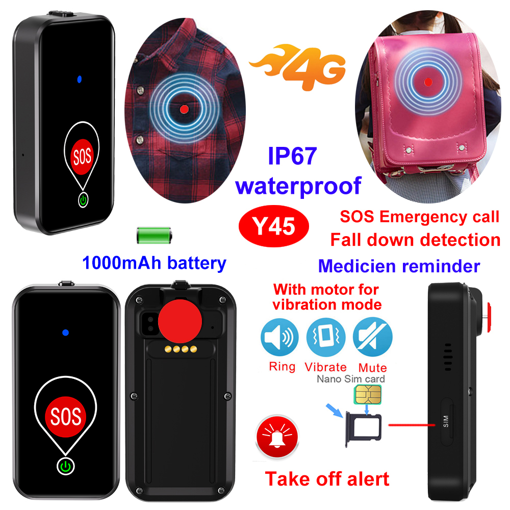4G Waterproof IP67 SOS emergency call Mini GPS gadget Tracker with take off alert, fall down detection, medicine reminder Y45